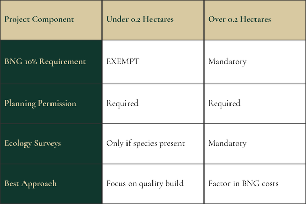 No 10% “Nature Tax”: If you’re under 0.2ha, you are exempt from mandatory Biodiversity Net Gain (BNG).